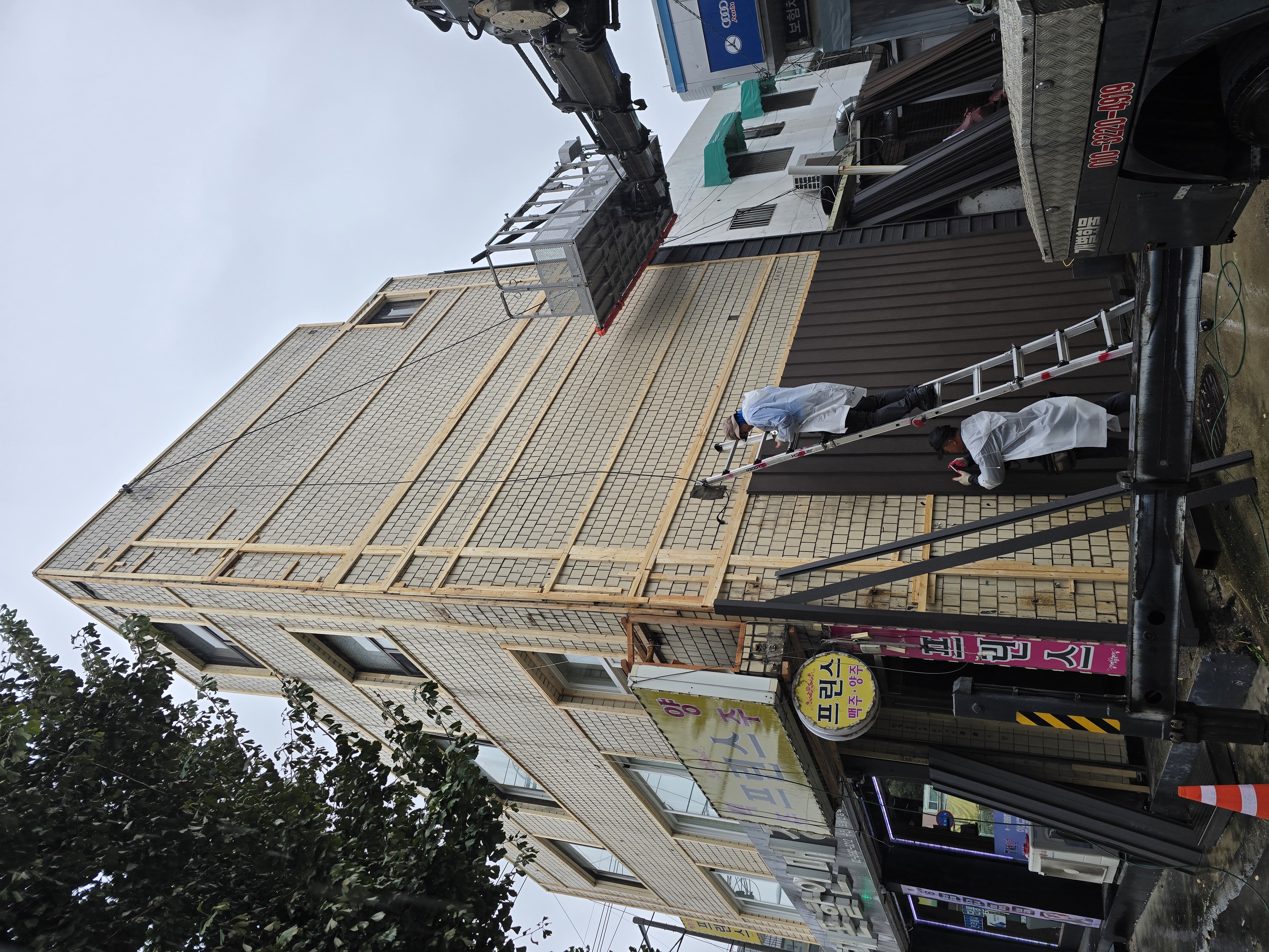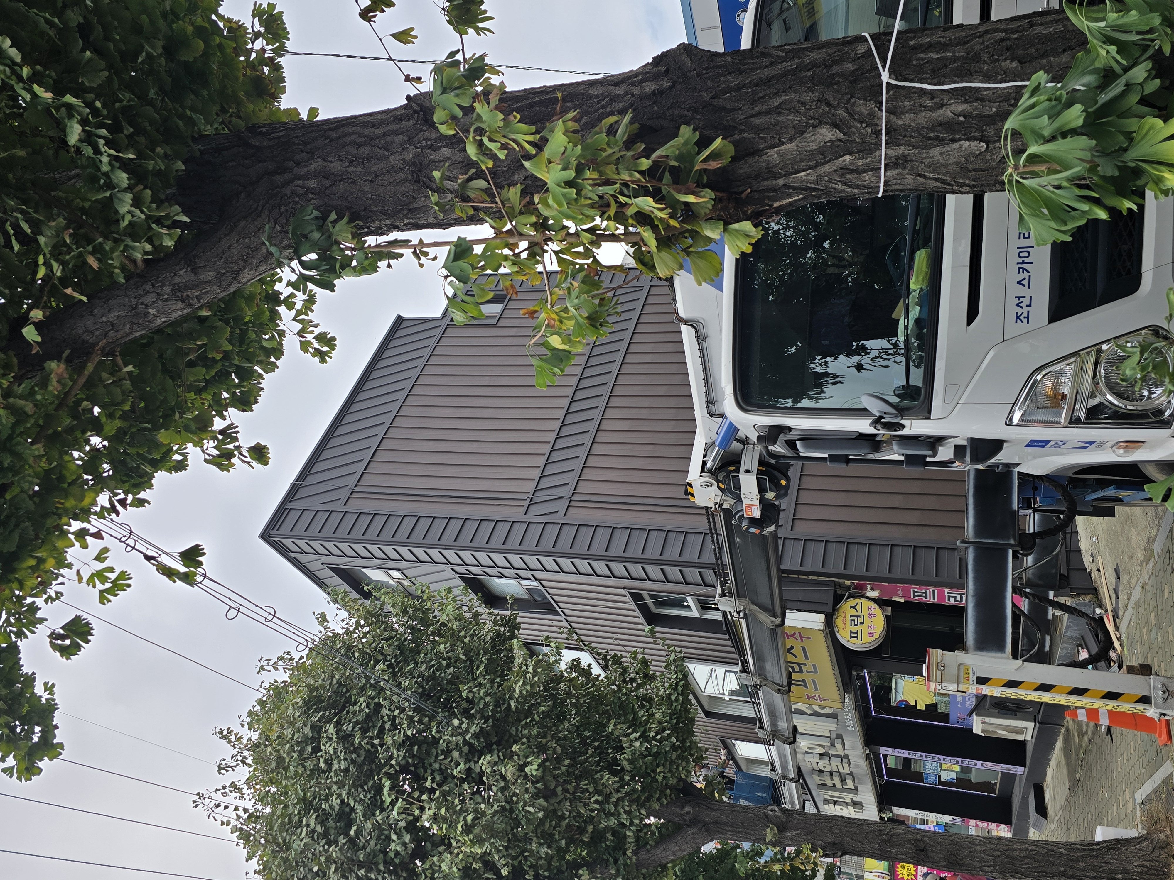 서울시 방화동. 칼라강판V250징크로 노후된 외벽을 리모델링함.